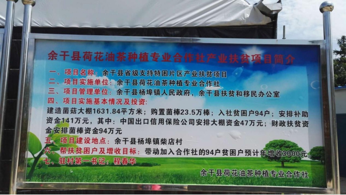 2017年9月,中國信保支持余干縣在11個深度貧困村成立菌菇種植合作社。