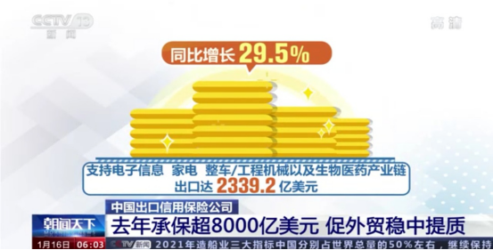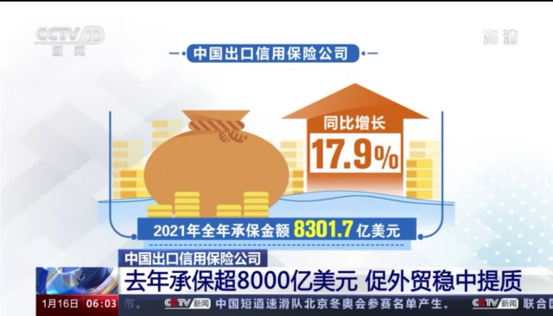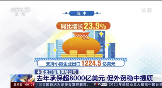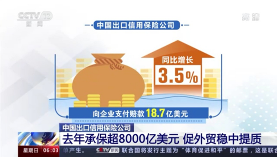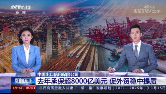 央視新聞頻道:中國出口信用保險公司去年承保超8000億美元 促外貿穩中提質