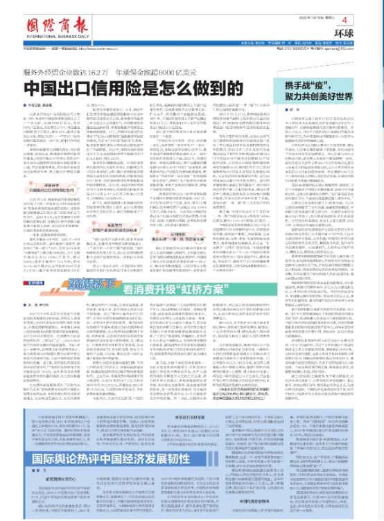 《國際商報》:服務外經貿企業數達16.2萬 年承保金額超8000億美元 中國出口信用險是怎么做到的