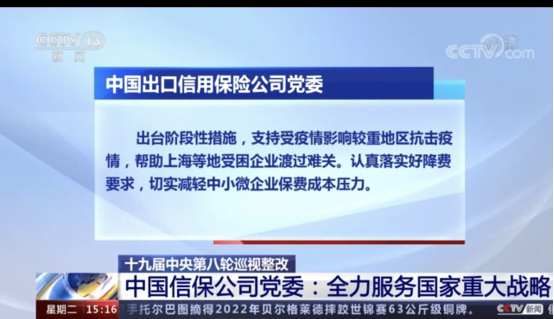 中央電視臺報道中國信保黨委巡視整改情況
