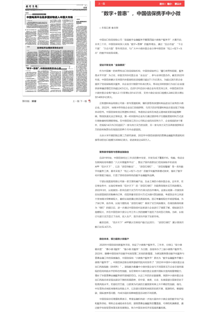 《國際商報》:“數字+普惠”,中國信保攜手中小微