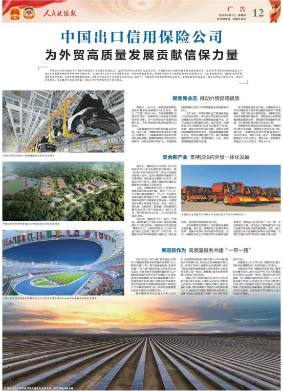 人民政協報:中國出口信用保險公司為外貿高質量發展貢獻信保力量