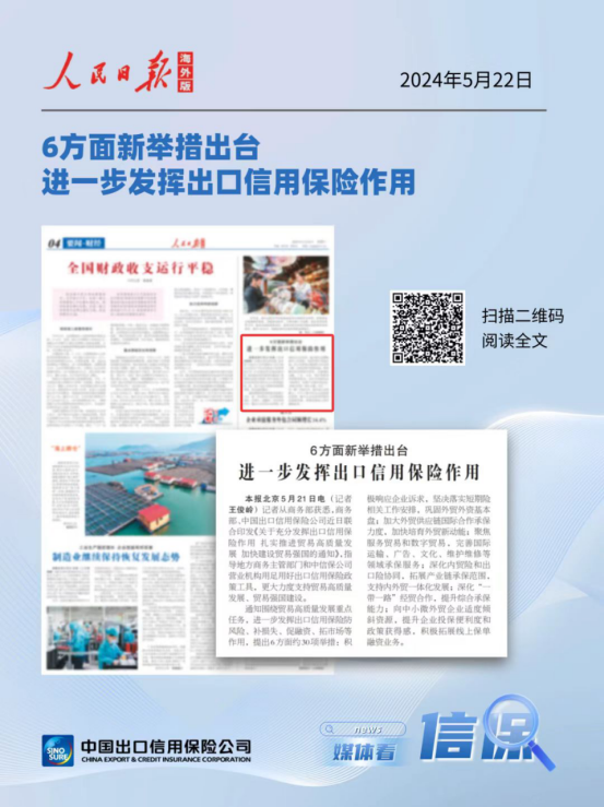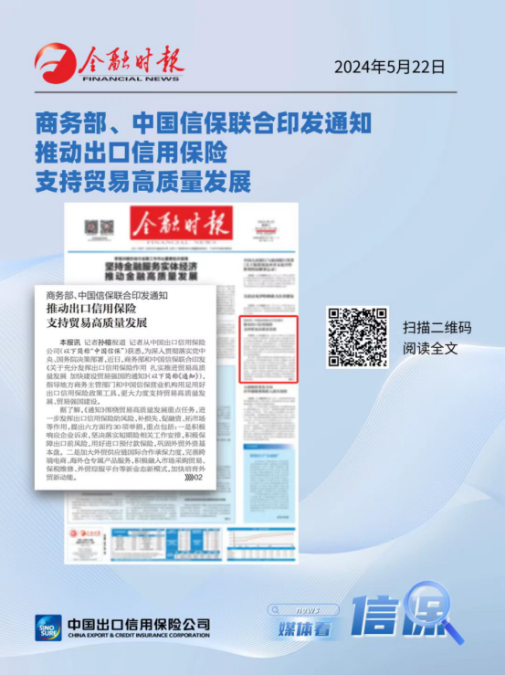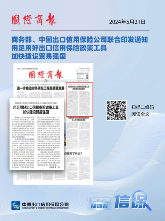 近日,《人民日報》、新華社、《人民日報(海外版)》、中央廣播電視總臺、《國際商報》、《金融時報》等多家主流媒體對商務部、中國出口信用保險公司聯合印發《關于充分發揮出口信用保險作用 扎實推進貿易高質量發展 加快建設貿易強國的通知》進行報道?!锻ㄖ分笇У胤缴虅罩鞴懿块T和中國信保營業機構用足用好出口信用保險政策工具,更大力度支持貿易高質量發展、貿易強國建設。