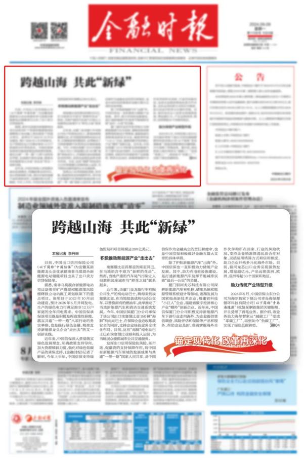 《中共中央關于進一步全面深化改革、推進中國式現代化的決定》對深化生態文明體制改革作出部署,提出健全綠色低碳發展機制。中國信保表示,下一步,中國信保將深入貫徹落實黨的二十屆三中全會精神和中央金融工作會議精神,充分履行政策性職能,積極助力綠色低碳轉型,支持新能源企業全球化發展,推動構建雙循環新發展格局,做綠色高質量發展的推動者和護航者。