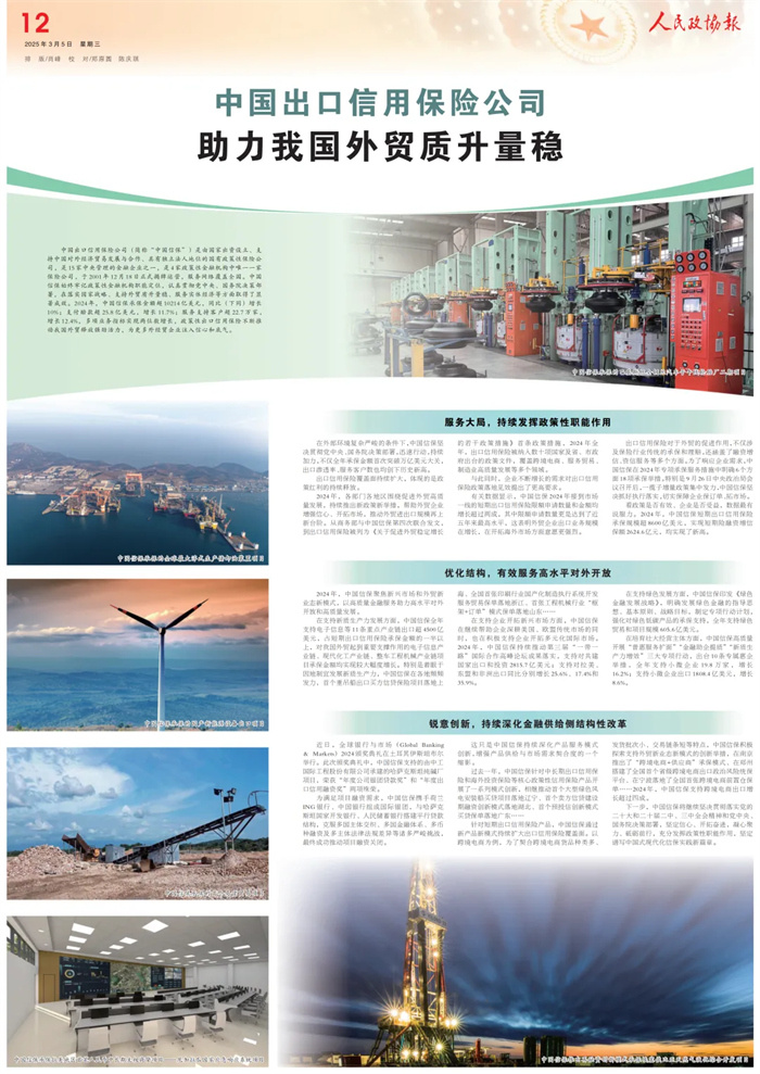 人民日報、人民政協報:中國出口信用保險公司助力推動外貿質升量穩