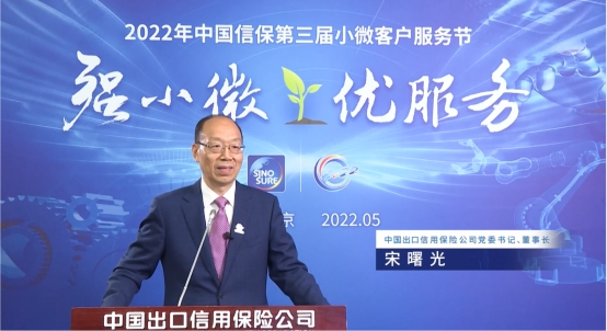 2022年5月31日,中國出口信用保險公司(以下簡稱“中國信保”) 在線舉辦第三屆小微客戶服務節(jié)開幕式,中國信保董事長宋曙光出席并致辭。
